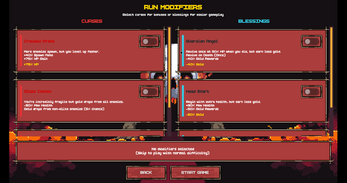 - Run Modifiers (curses and blessings) that change difficulty and rewards