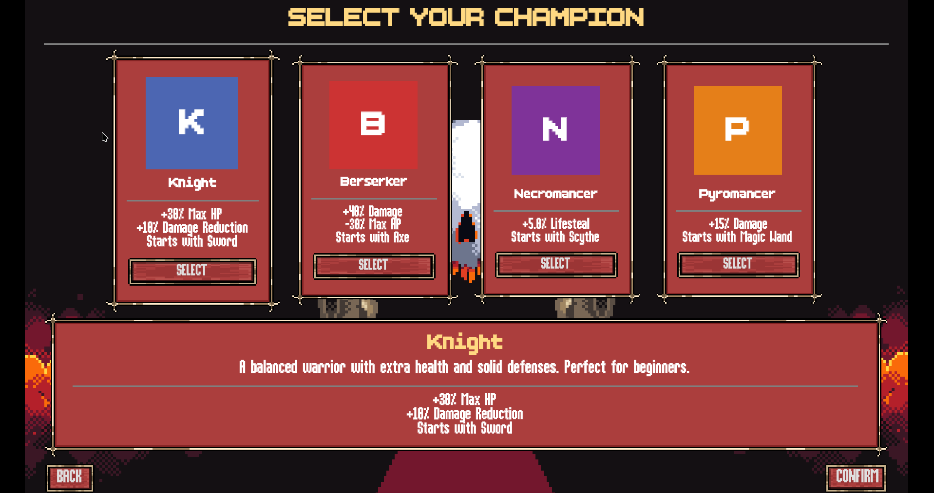 Knightmared is a top-down action roguelite focused on intense survival combat, build crafting, and meaningful run choices.